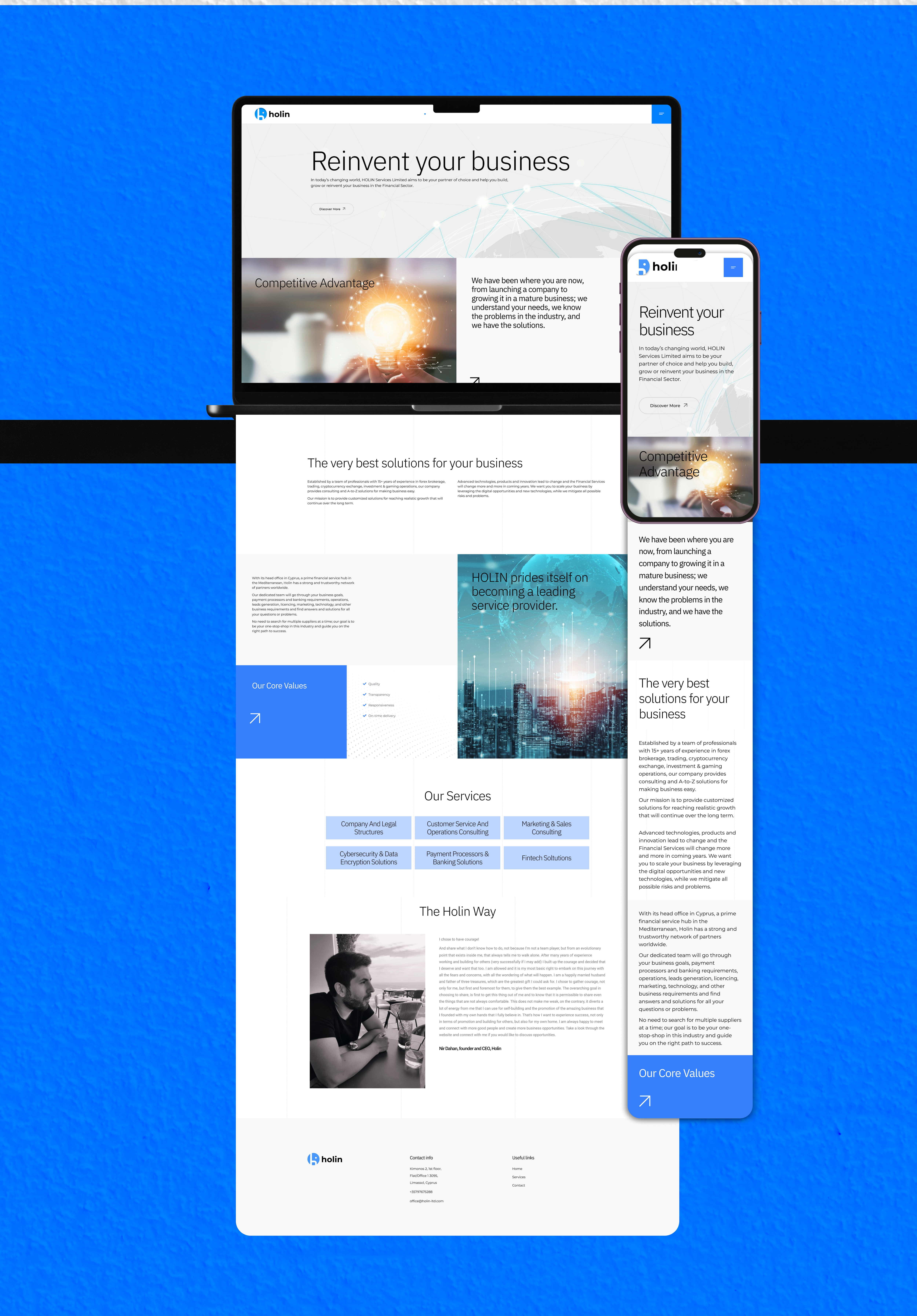 Holin Ltd. required a modern, professional website to showcase their end-to-end solutions for businesses in the financial sector. The site highlights their expertise in forex, cryptocurrency, investment, and fintech services, offering everything from consulting to marketing, payment solutions, and cybersecurity. With a clean, straightforward design and easy navigation, the site reflects Holin’s commitment to quality, transparency, and long-term growth. It’s as responsive and adaptable as the solutions Holin provides, helping businesses scale confidently in an ever-evolving industry.